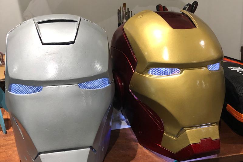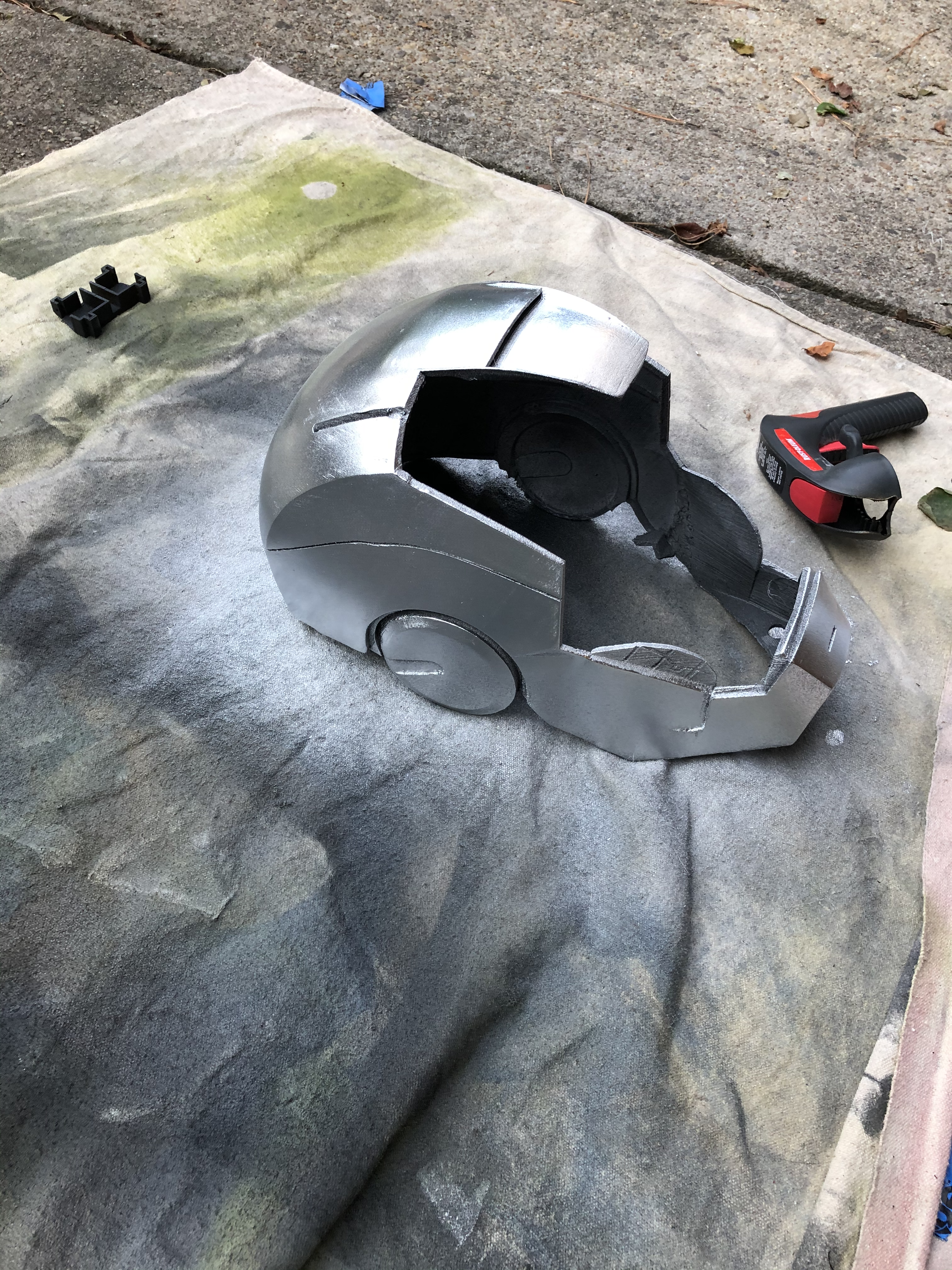 Working on the second helmet.